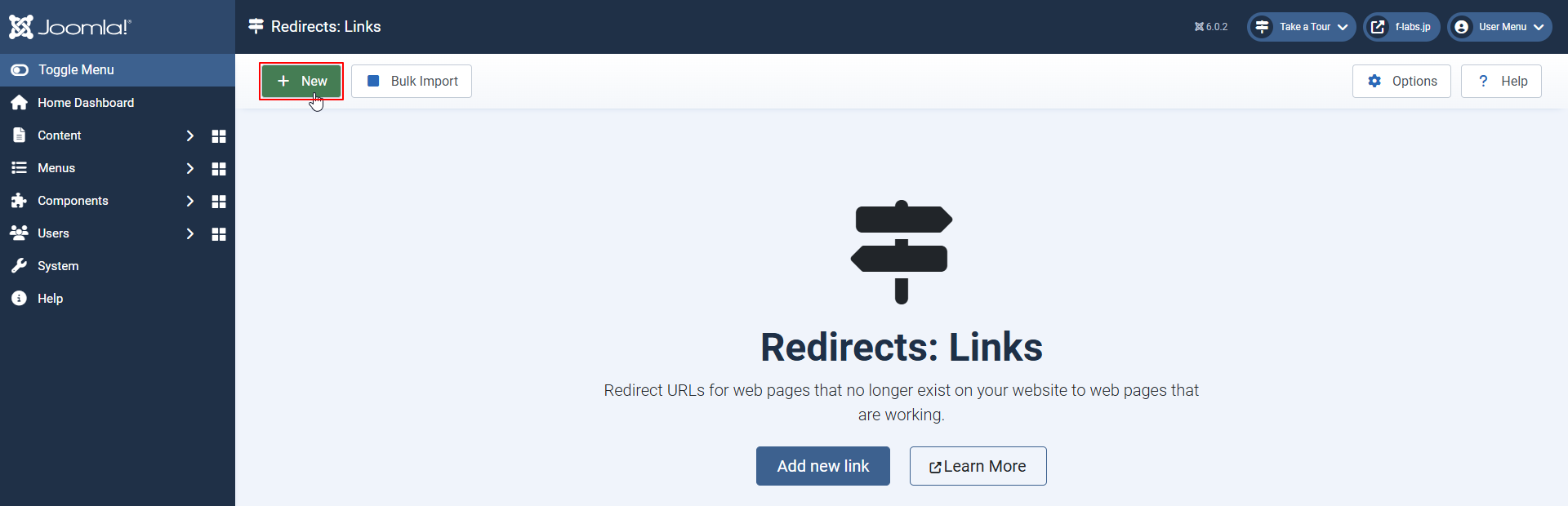 - Joomla!でのRedirects: Linksの設定