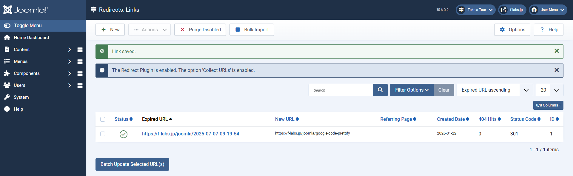 Joomla! CoreのRedirect Pluginを使用して、旧URLから新URLへの301 Redirectを管理します。