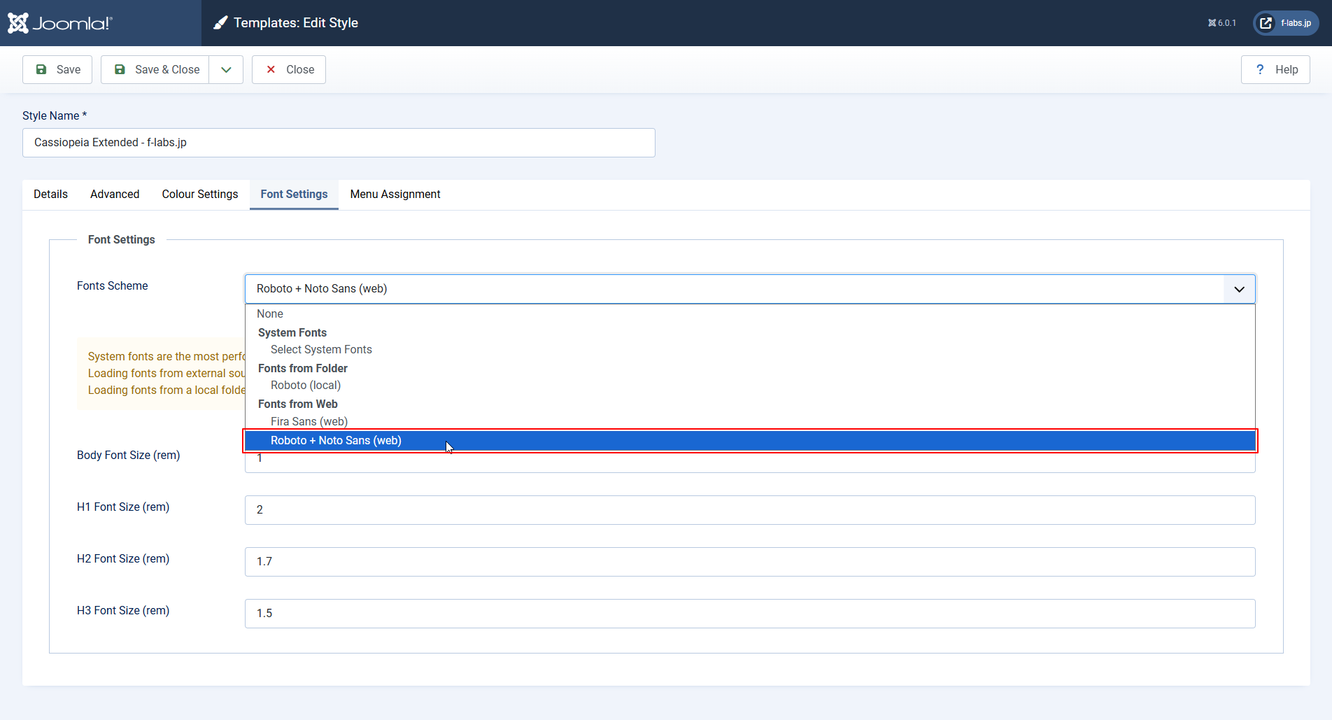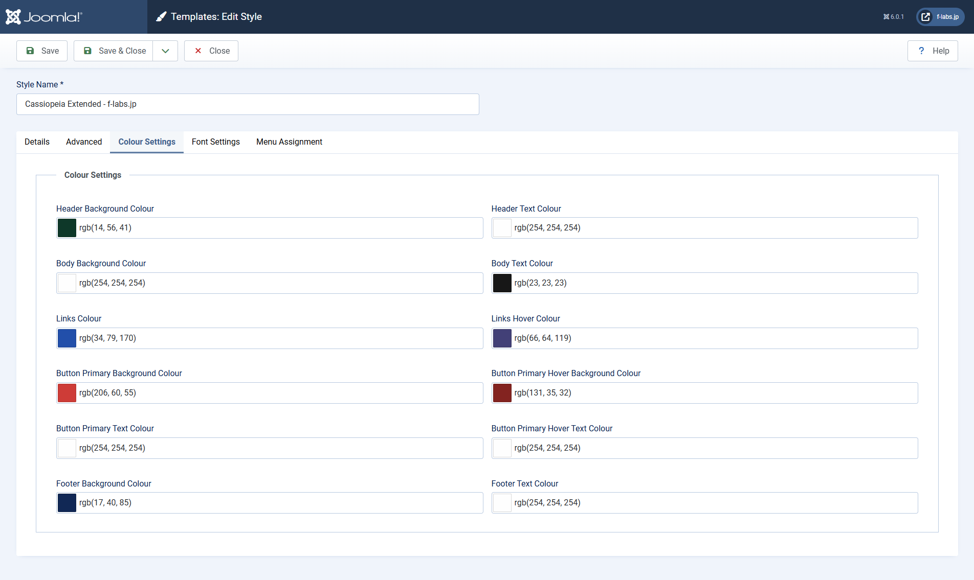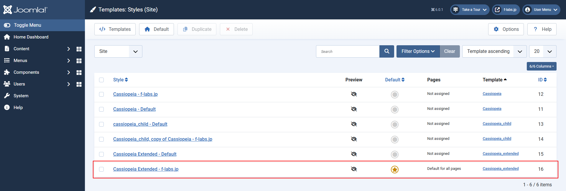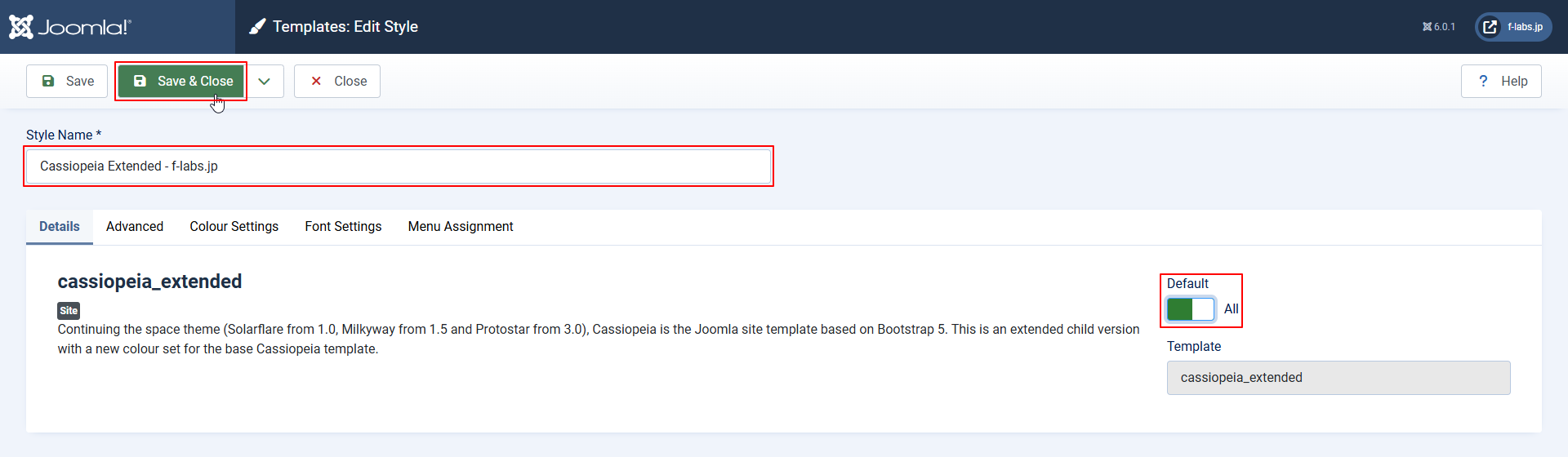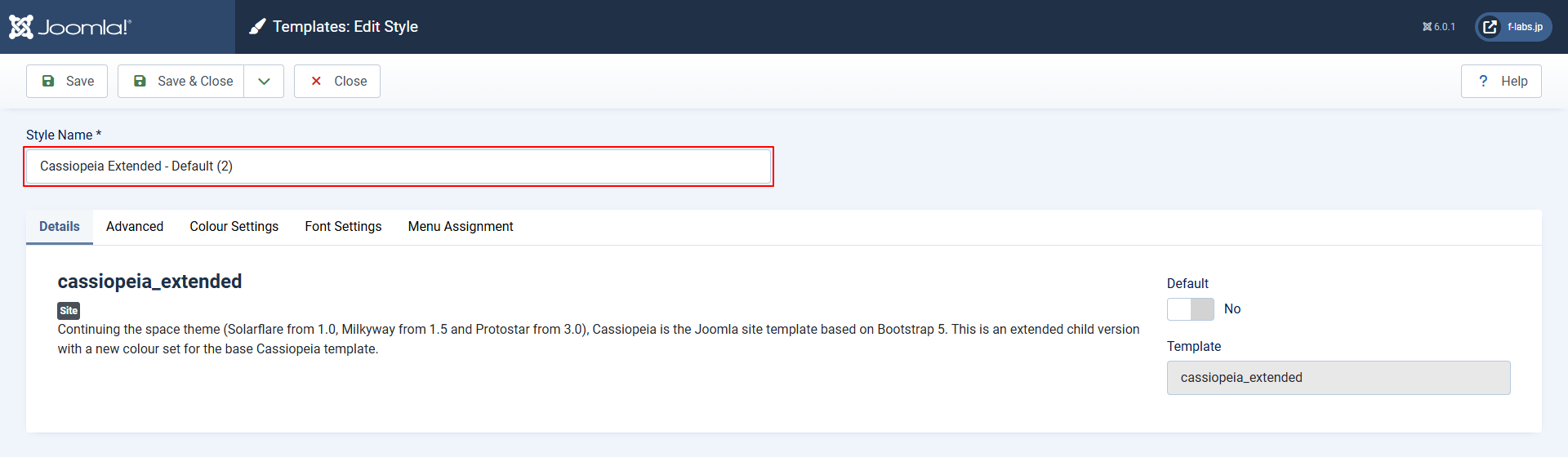 - 使用するStyleとしてCassiopeia_extended - f-labs.jp StyleをDefault指定します