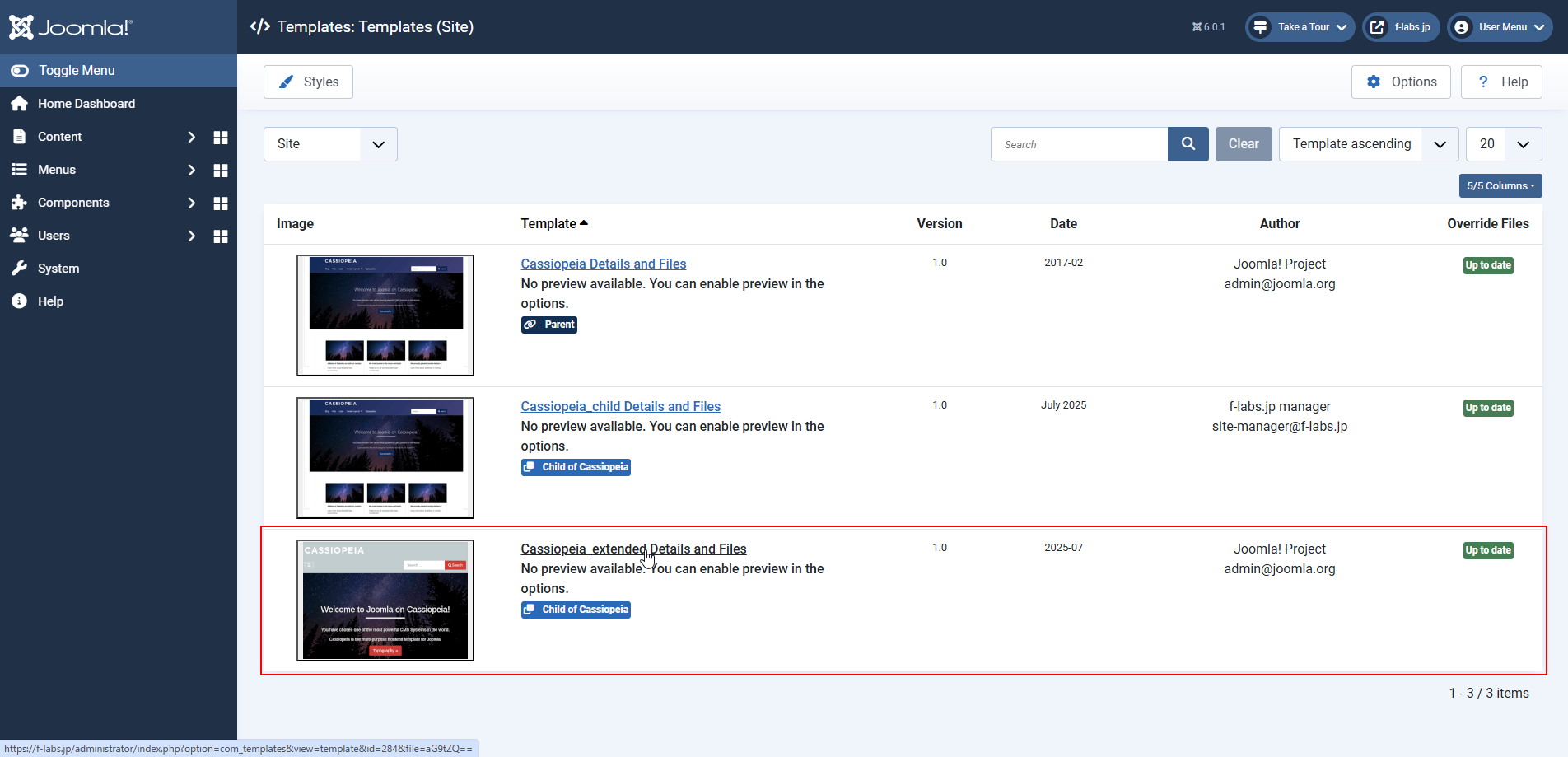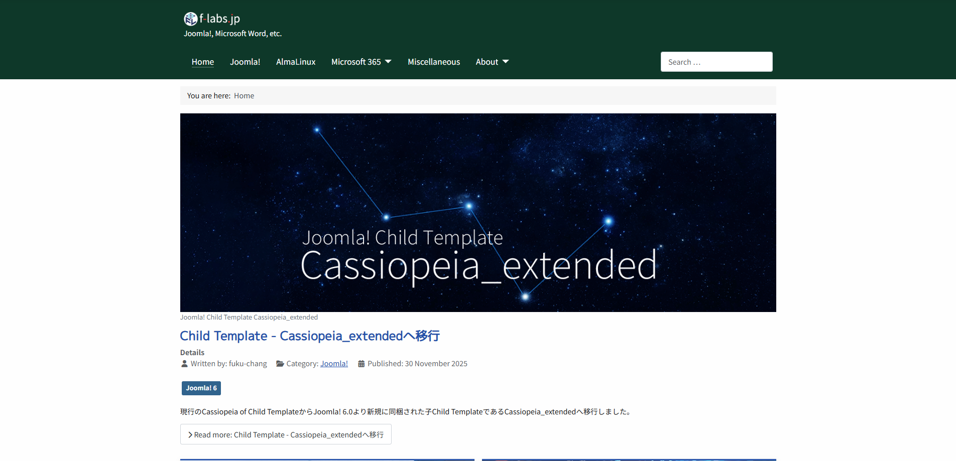 - Joomla! 6.0以降もCassiopeia Templateを使用し続ける当サイトは、現行のCassiopeia of Child TemplateからCassiopeia_extendedへ移行することとしました