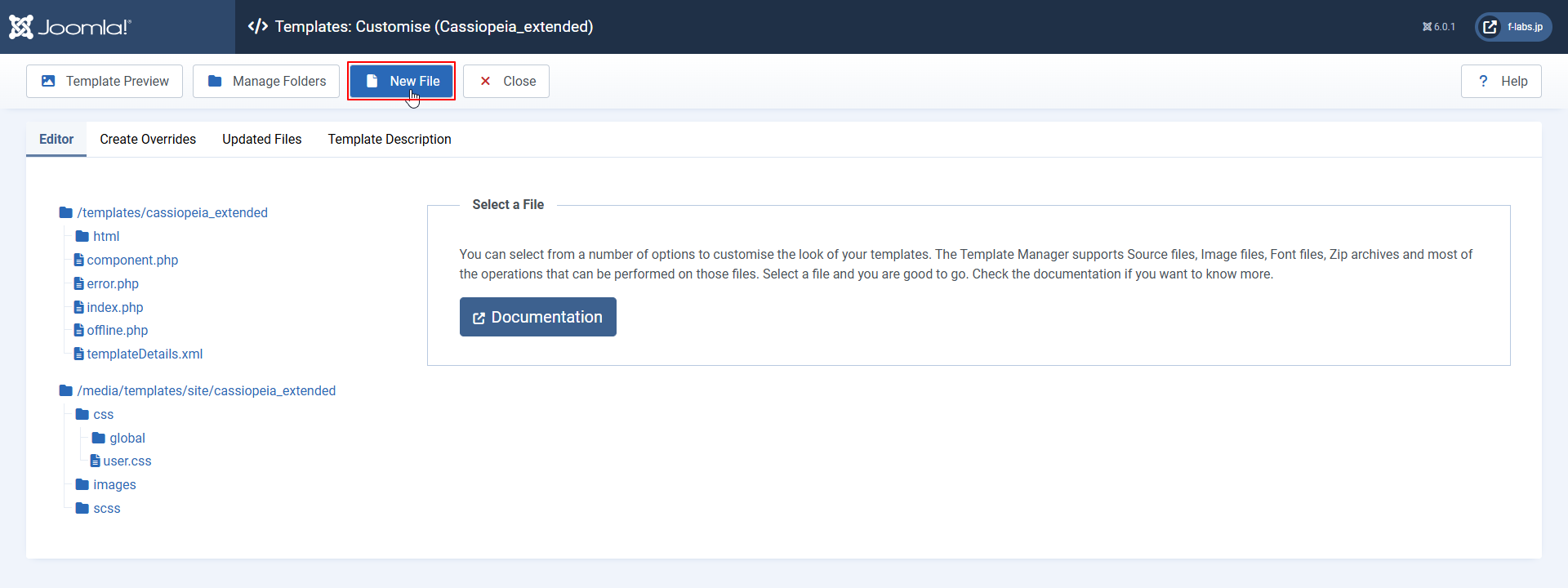 - これまで、サイトの修飾はCassiopeia_child Templateのuser.cssに指定してきましたが、今後はCassiopeia_extended Templateに新規作成するuser.cssに移行する方針としました