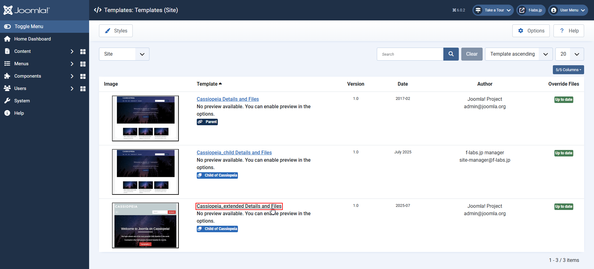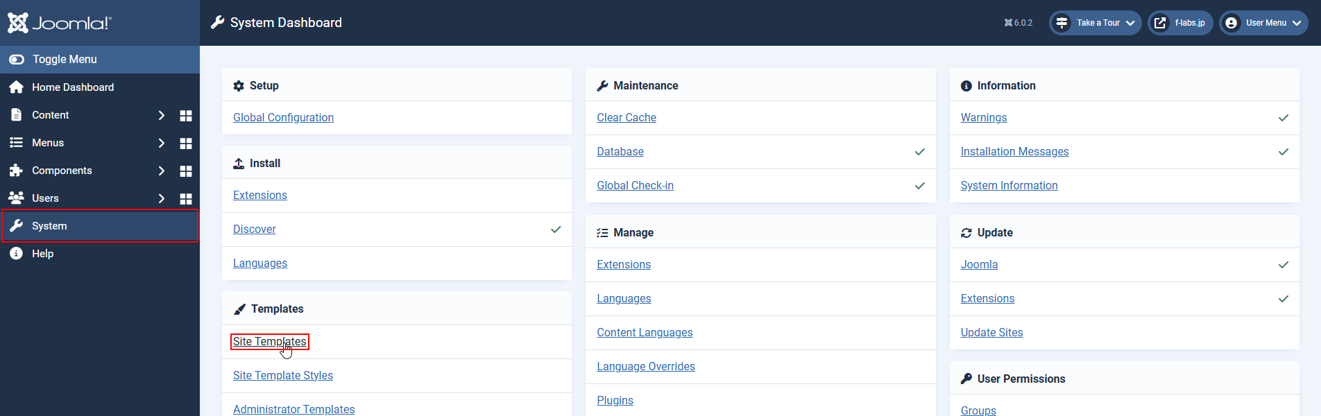 - System > Templates > Site Templatesをクリックします
