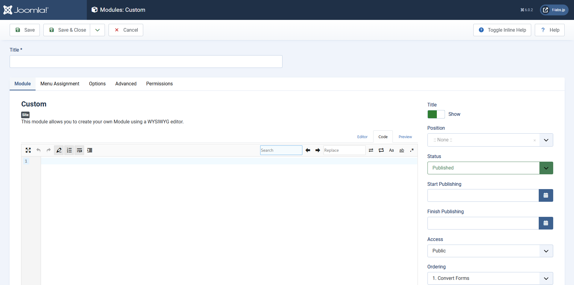 - [Site Moduleを表示するArticleの作成 手順5]で使用するので指定したPosition名を控えておきます