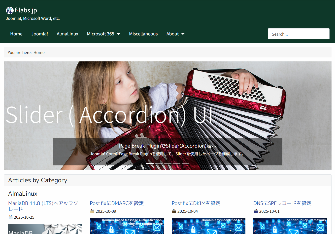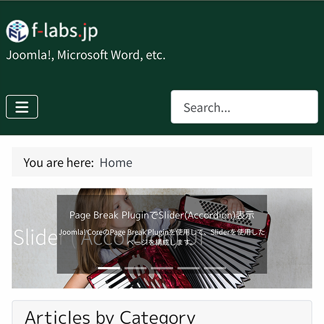<div id="myCarouselCaptions" class="carousel slide" data-bs-ride="carousel"> <div class="carousel-indicators"> <button class="active" type="button" data-bs-target="#myCarouselCaptions" data-bs-slide-to="0" aria-current="true" aria-label="Slide 1"></button> <button type="button" data-bs-target="#myCarouselCaptions" data-bs-slide-to="1" aria-label="Slide 2"></button> <button type="button" data-bs-target="#myCarouselCaptions" data-bs-slide-to="2" aria-label="Slide 3"></button> <button type="button" data-bs-target="#myCarouselCaptions" data-bs-slide-to="3" aria-label="Slide 4"></button> <button type="button" data-bs-target="#myCarouselCaptions" data-bs-slide-to="4" aria-label="Slide 5"></button> </div> <div class="carousel-inner"> <div class="carousel-item active"><!-- 01 --> <a href="https://f-labs.jp/joomla/display-slider-with-page-break-plugin"> <img class="d-block w-100" src="/images/article_images/2026-01-27-21-38-46/2026-01-27-21-38-46_00.png" alt="Page Break PluginでSlider(Accordion)表示"> <div class="carousel-caption carousel-text"><!-- キャプション非表示のclass="d-none d-md-block"を削除 --> <h5>Page Break PluginでSlider(Accordion)表示</h5> <p>Joomla! CoreのPage Break Pluginを使用して、Sliderを使用したページを構成します。</p> </div> </a> </div> <div class="carousel-item"><!-- 02 --> <a href="https://f-labs.jp/joomla/redirect-to-non-www-urls"> <img class="d-block w-100" src="/images/article_images/2026-01-25-08-49-48/2026-01-25-08-49-48_00.png" alt="WWW URLsをNon-WWW URLsにリダイレクト"> <div class="carousel-caption carousel-text"><!-- キャプション非表示のclass="d-none d-md-block"を削除 --> <h5>WWW URLsをNon-WWW URLsにリダイレクト</h5> <p>WWW URLsをNon-WWW URLsにリダイレクトするよう設定しました。</p> </div> </a> </div> <div class="carousel-item"><!-- 03 --> <a href="https://f-labs.jp/joomla/301-redirect"> <img class="d-block w-100" src="/images/article_images/2026-01-21-17-20-14/2026-01-21-17-20-14_00.png" alt="301 Redirectを管理する"> <div class="carousel-caption carousel-text"><!-- キャプション非表示のclass="d-none d-md-block"を削除 --> <h5>301 Redirectを管理する</h5> <p>Joomla! CoreのRedirect Pluginを使用して、旧URLから新URLへの301 Redirectを管理します。</p> </div> </a> </div> <div class="carousel-item"><!-- 04 --> <a href="https://f-labs.jp/joomla/articles-module"> <img class="d-block w-100" src="/images/article_images/2026-01-15-12-54-03/2026-01-15-12-54-03_00.png" alt="Articles ModuleによるHomeページのカスタマイズ"> <div class="carousel-caption carousel-text"><!-- キャプション非表示のclass="d-none d-md-block"を削除 --> <h5>Articles ModuleによるHomeページのカスタマイズ</h5> <p>Articles Moduleを使用して当サイトのHome(Top)ページをカスタマイズします。</p> </div> </a> </div> <div class="carousel-item"><!-- 05 --> <a href="https://f-labs.jp/joomla/joomla-6-0-2"> <img class="d-block w-100" src="/images/article_images/2026-01-09-08-18-15/2026-01-09-08-18-15_00.png" alt="Joomla! 6.0.2セキュリティ・バグフィックスリリース"> <div class="carousel-caption carousel-text"><!-- キャプション非表示のclass="d-none d-md-block"を削除 --> <h5>Joomla! 6.0.2セキュリティ・バグフィックスリリース</h5> <p>2026/01/06付けでJoomla! 6.0.2と5.4.2のセキュリティ・バグフィックスがリリースされました。</p> </div> </a> </div> </div> <button class="carousel-control-prev" type="button" data-bs-target="#myCarouselCaptions" data-bs-slide="prev"> <span class="carousel-control-prev-icon" aria-hidden="true"></span> <span class="visually-hidden">Previous</span> </button> <button class="carousel-control-next" type="button" data-bs-target="#myCarouselCaptions" data-bs-slide="next"> <span class="carousel-control-next-icon" aria-hidden="true"></span> <span class="visually-hidden">Next</span> </button> </div>